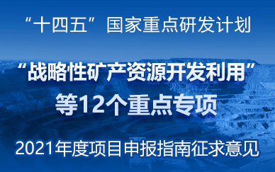 中国粉体网讯 2月4日,科技部社会发展科技司公布了关于对“十四五”国家重点研发计划“战略性矿产资源开发利用”等12个重点专项2021年度项目申报指南征求意见的通知。