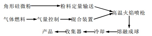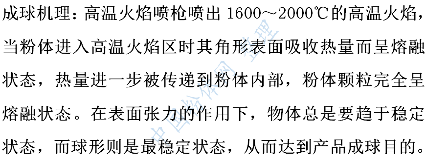 已产业化的气体燃烧火焰成球法,其主要生产设备有:粉料定量输送系统、燃气量控制和混合装置、气体燃料高温火焰喷枪、冷却回收装置,下面分别简要介绍其工作原理。