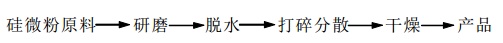 湿法研磨生产工艺:是将若干重量硅微粉原料一次投入球磨机中,加入适量的水,作业浓度在65%~80%;连续研磨十几个小时后,倒出料浆,用压滤方法或放在料桶内自然沉淀脱水,得到含水料饼;用打碎机打碎分散后均匀连续地投到空心轴搅拌烘干机中,干燥后得到产品。
