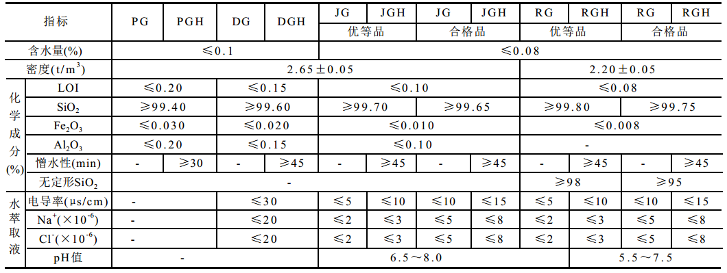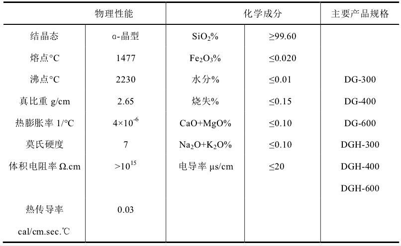 电子电器工业用硅微粉理化指标