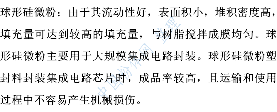 (5)应用于集成电路覆铜板的硅微粉可分为:结晶型硅微粉、熔融型(无定型)硅微粉、球形硅微粉、复合硅微粉、活性硅微粉等五个品种。
