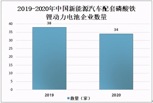2019年中国新能源汽车磷酸铁锂动力电池共有38家配套企业,2020年中国新能源汽车磷酸铁锂动力电池共有34家配套企业,较2019年减少了4家。