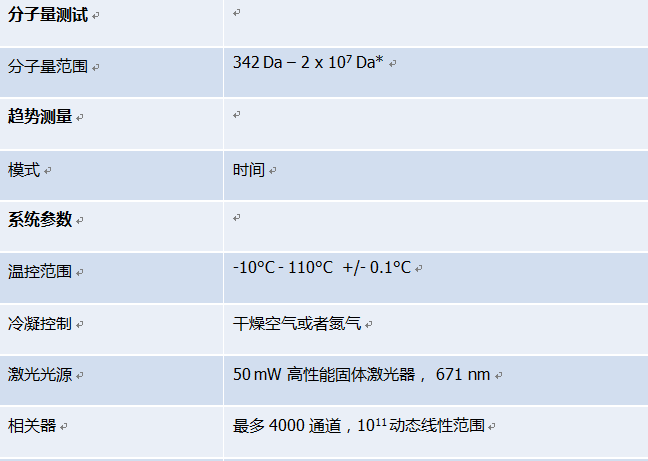 静态光散射SLS技术能够检测颗粒、大分子物质的平均散射光强,通过瑞利散射方程将散射光强与大分子物质的绝对分子质量和第二维利系数A2等信息联系起来。