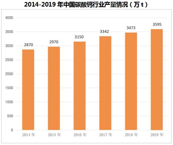 得益于造纸行业重质碳酸钙用量的持续大幅增加,以及塑料行业、橡胶行业、涂料行业以及建筑材料等的快速发展,我国重质碳酸钙生产经营不断集中、生产能力不断提高,其产量、产值也持续增长。产量由2014年的1750万吨增长至2019年的2245万吨。