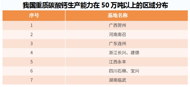 我国碳酸钙生产地主要集中在广西、安徽、广东、浙江、四川、江西、河南、辽宁、湖北、湖南等省区,企业遍布28个省市,现已形成广西贺州、来宾、河池和南宁,安徽池州,广东连州、梅州和恩平,浙江建德和衢州,四川石棉、宝兴和江油,江西永丰和德兴,河南南召,辽宁海城,湖南灵武,河北井陉等规模生产基地。
