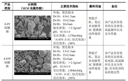 钴酸锂产品按照充电电压高低可以分为4.35V、4.4V、4.45V等型号,能量密度随电压的升高而升高,相应电池的待机时间也越长。行业目前多数企业仍然以4.35V、4.4V产品为主,而目前公司以4.45V及以上高电压产品为主,具有明显的领先优势,未来4.5V+钴酸锂产品是公司研发和生产的重点。