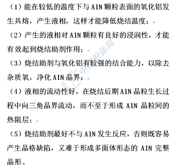 选择AlN陶瓷烧结助剂应遵循以下原则: