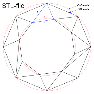 STL文件通过使用三维笛卡尔坐标系的三角形的单位法线和顶点(按右手法则排序)来描述原始的、非结构化的三角化表面。这种机器的自然文件格式是一系列对应于不同Z值的闭合多边形(层或切片)。然而,由于可以改变层厚度,STL能够以更快但不太精确的构建方式进行模拟,将构建模型定义为封闭多面体在水平面切片的集合。但是,STL毕竟基于网格架构,不能将信息存储为数学表达。因此,只能结转原始信息。这导致了它在存储时需要占用较大的硬盘空间,同时又不对模型本身的几何结构造成破坏。