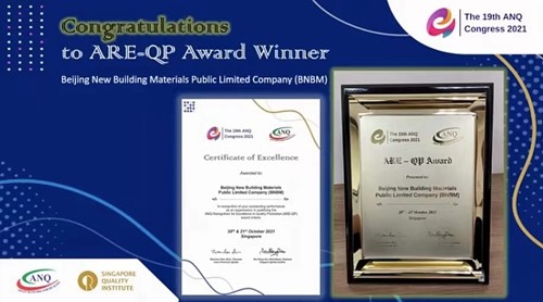 中国粉体网讯 10月20日至21日,第十九届亚洲质量网组织大会在新加坡召开。基于质量管理方面的最佳实践和突出成就,北新建材被亚洲质量网组织大会授予亚洲质量领域最高奖——“亚洲质量卓越奖”,成为中国建材行业首家获此荣誉的国有企业,也是墙体吊顶、防水材料、涂料行业第一家荣获“亚洲质量卓越奖”的中国企业。