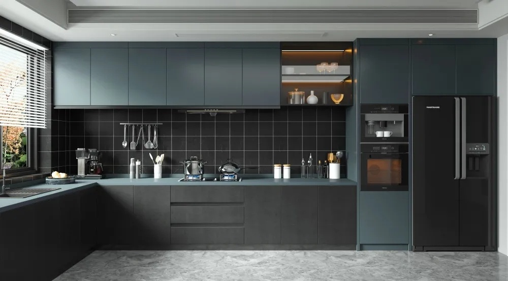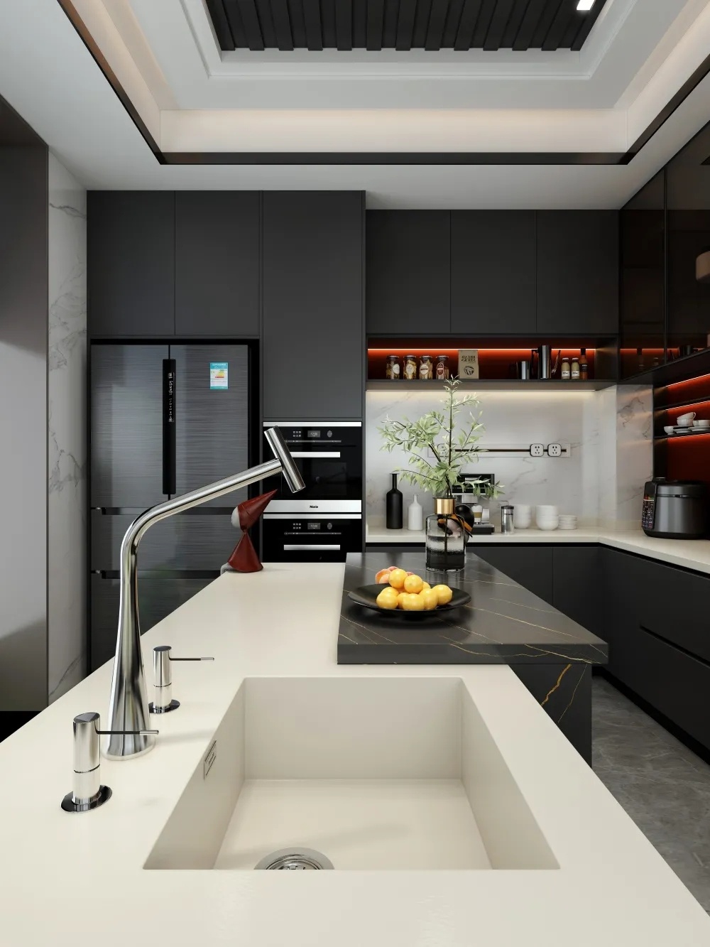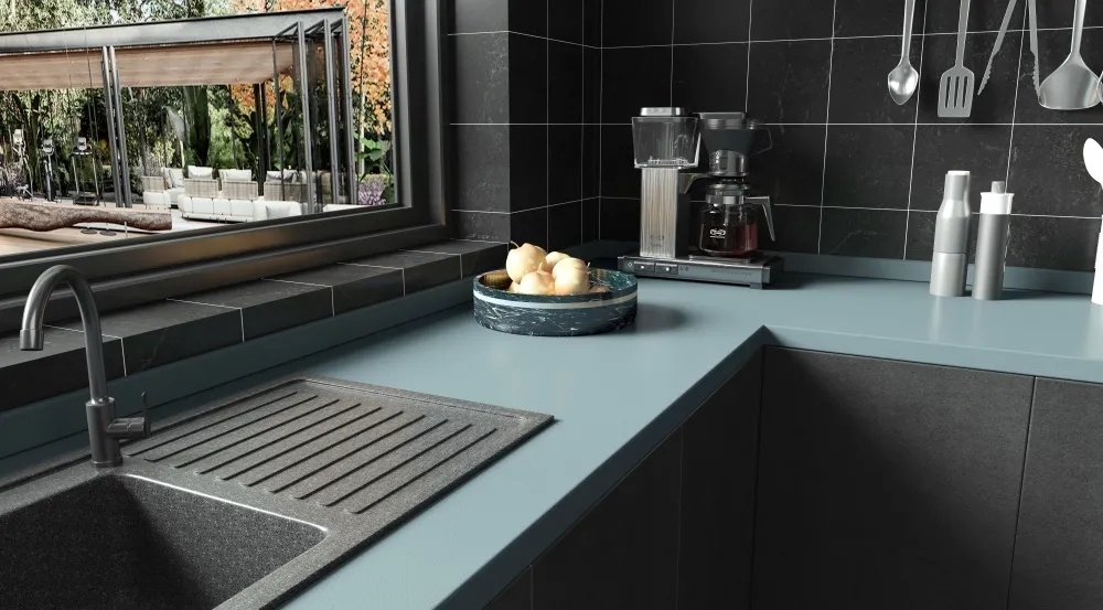 雾霾蓝石英石台面,干练、成熟的配色,仿佛置身幽静的湖边,让人心情放松。在极具设计感的家居、开放式厨房或带小资情调的空间,莫兰迪色系会是你的“意中人”。