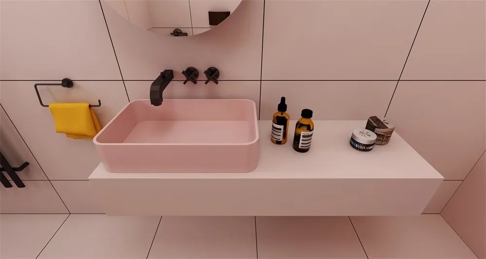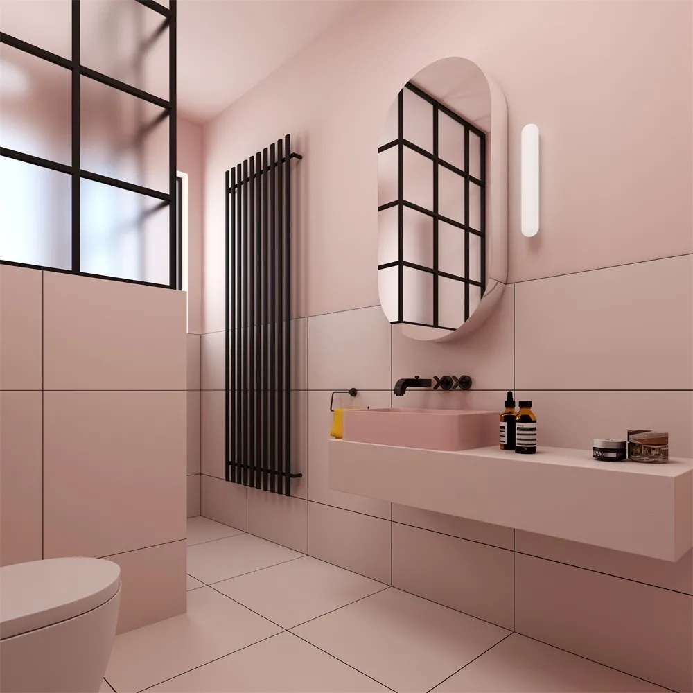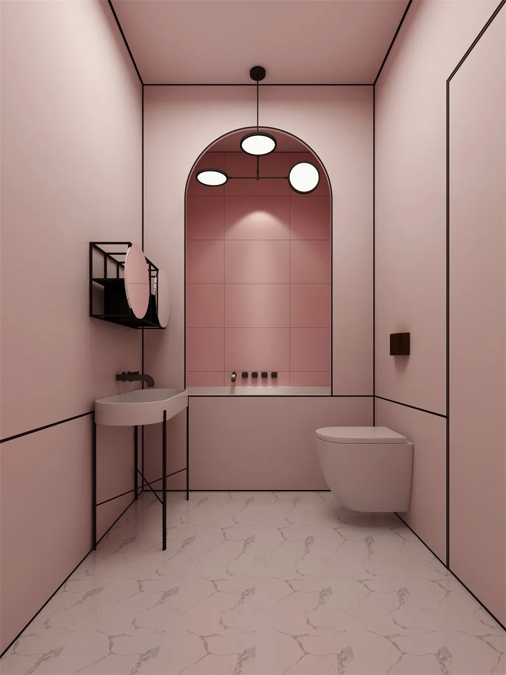 烟粉色是在温润的粉色里加入了一点灰,如傍晚的晚霞那么美好,梦幻而宁静的感觉。细腻而时尚、有个性的洗浴空间,深受轻熟女的喜爱。