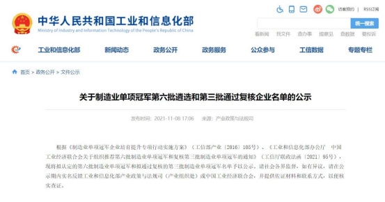 11月8日,工业和信息化部发布了《关于制造业单项冠军第六批遴选和第三批通过复核企业名单的公示》,山东天岳先进科技股份有限公司、河南天马新材料股份有限公司、山东鲁阳节能材料股份有限公司、江苏联瑞新材料股份有限公司、淄博工陶新材料集团有限公司等入选单项冠军示范企业名单。