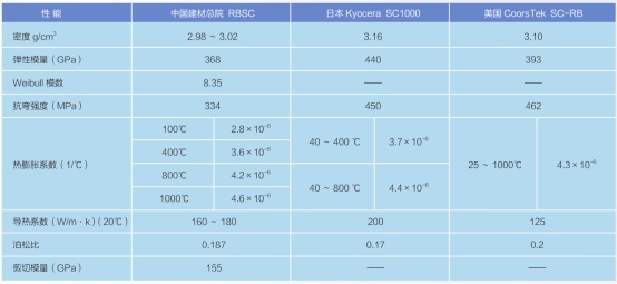 表:中国建筑材料科学研究总院研制的碳化硅产品性能与外企产品性能对比