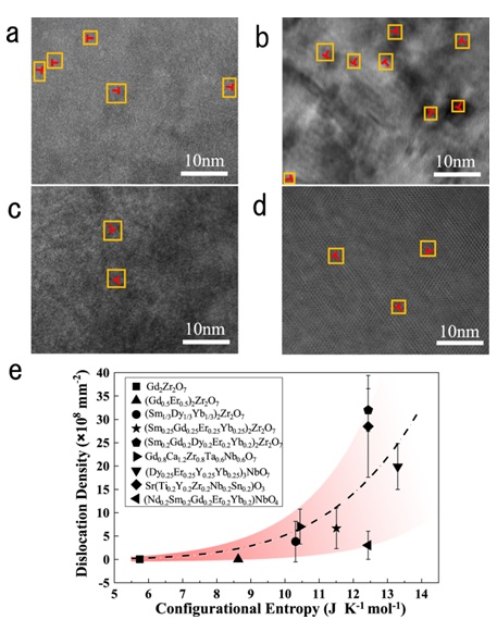 各种结构的高熵氧化物中超致密位错的高分辨率观察