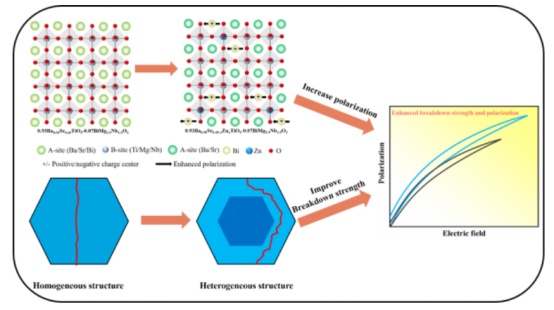中国科学院上海硅酸盐研究所铁电陶瓷材料与器件研究团队提出一种新的陶瓷设计策略,缓解耐电强度与有效介电常数的相互制约,在不影响储能效率的前提下实现了储能密度提高。