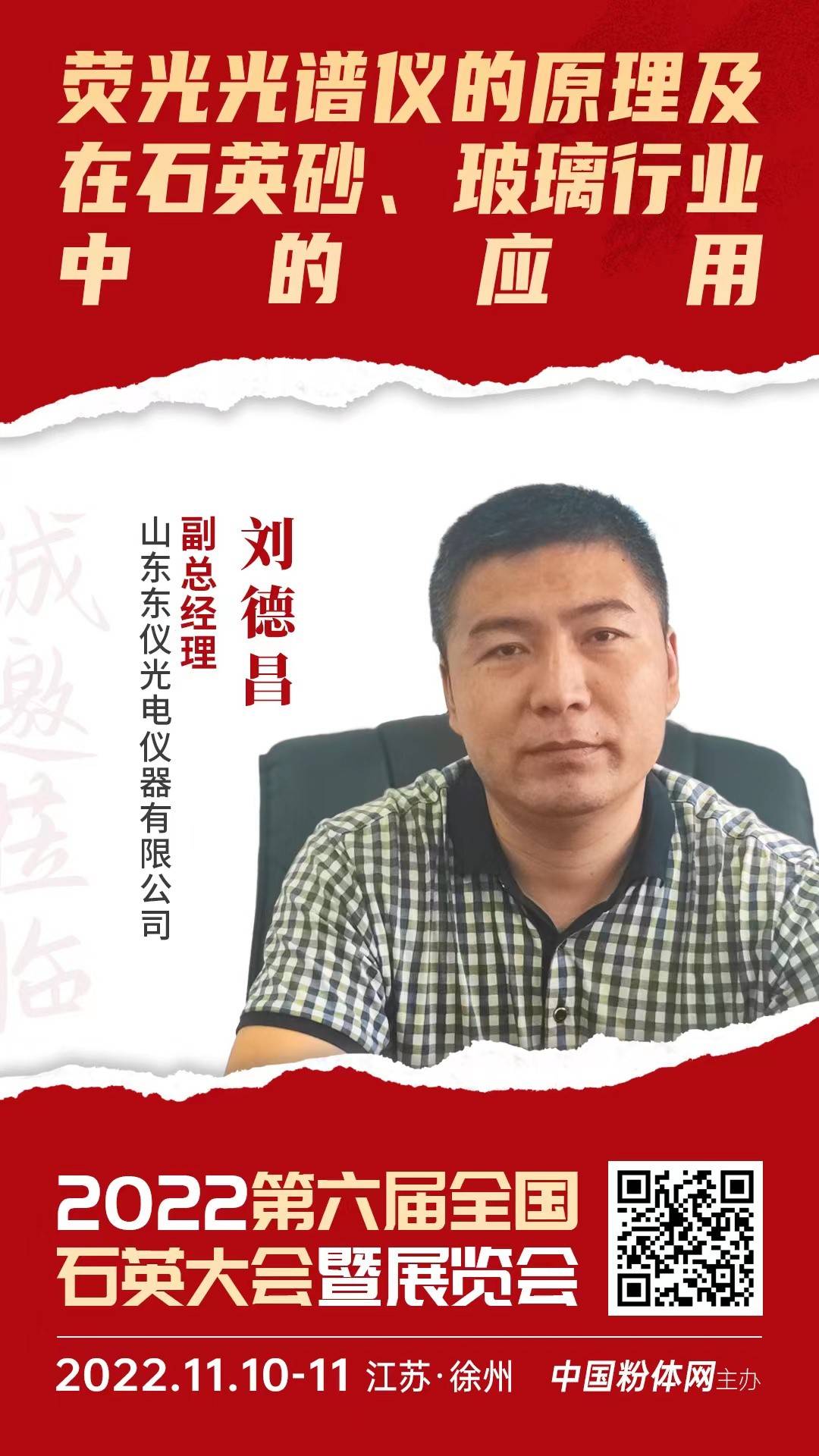 2022年11月10日至11日,中国粉体网将在江苏徐州举办“2022第六届全国石英大会暨展览会”。来自山东东仪光电仪器有限公司的副总经理刘德昌将带来题为《荧光光谱仪的原理及在石英砂、玻璃行业中的应用》的报告。