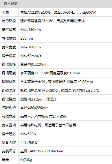 应用范围:MSK-DPC-C200 片式覆膜机是一款应用于片材复合的设备。本设备由胶辊和可加热钢辊组成,钢辊由电阻式加热棒加热,可单独使用本设备实现单片材料的复合,是材料电池行业加热复合实验样品的首选。