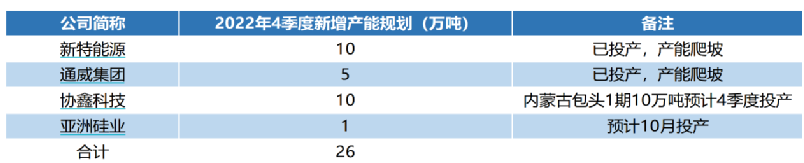另一个不容忽视的因素是,随着今年国内各大硅料玩家大幅扩充产能,新扩多晶硅产能有望在四季度加速释放。包括通威股份、协鑫科技等硅料龙头均在持续加码硅料项目建设。