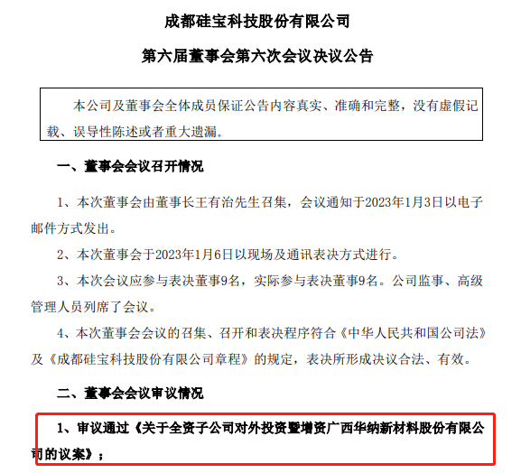 中国粉体网讯 1月6日,硅宝科技公告,全资子公司硅宝投资拟以3000万元对广西华纳新材料股份有限公司进行增资,增资款专项用于目标公司扩产及日常生产经营。