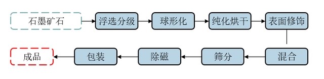 石墨初加工是以石墨精矿为原料,经过不太复杂的物理或化学方法制备的、需要再加工才可以作为材料应用的加工过程。石墨初加工产品包括高碳石墨(不包括选矿得到的高碳石墨)、高纯石墨、可膨胀石墨、球形石墨、炼钢增碳剂等。石墨深加工是以石墨精矿或者初加工产品为原料,经过较复杂工艺制备的,为终端设备、器件、工艺等提供材料的加工过程。