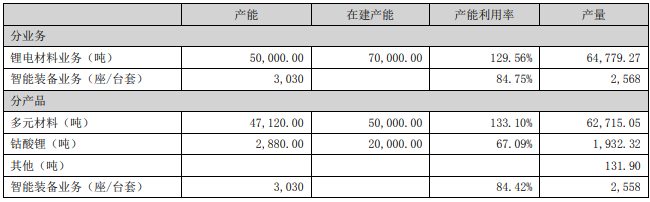 其中锂电材料及其他业务营收210.94亿元,占比99.2%,其中包括多元材料营收190.57亿元,钴酸锂营收7.58亿元,其他产品营收12.87亿元。