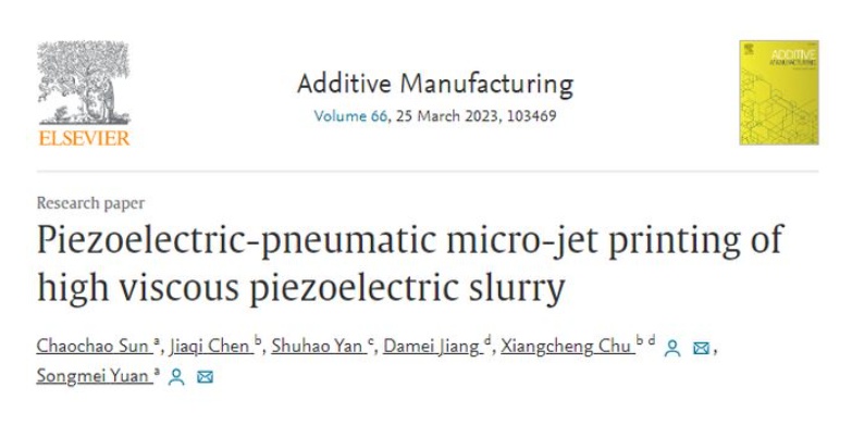 中国粉体网讯 近日,北京航空航天大学机械学院袁松梅教授课题组联合清华大学、北京科技大学、佛山(华南)新材料研究院在高粘度、高固含量压电陶瓷3D打印领域取得了新进展。相关工作以“Piezoelectric-pneumatic micro-jet printing of high viscous piezoelectric slurry”为题,于近期发表在《Additive Manufacturing》期刊上。该研究获国家自然基金(No.51775304)、广东省基础与应用基础研究基金(No.2020A1515110220)等项目资助。机械学院博士生孙超超为文章第一作者,机械学院袁松梅教授和清华大学材料学院褚祥诚副研究员为共同通讯作者,北京航空航天大学为该论文的第一完成单位。