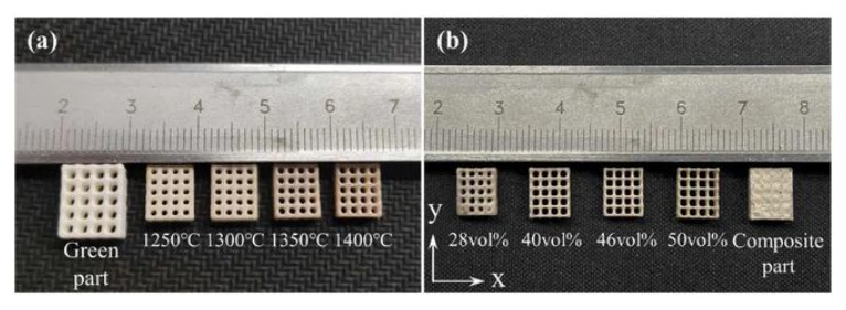 不同烧结温度、不同固含量陶瓷浆料打印件的成型效果对比