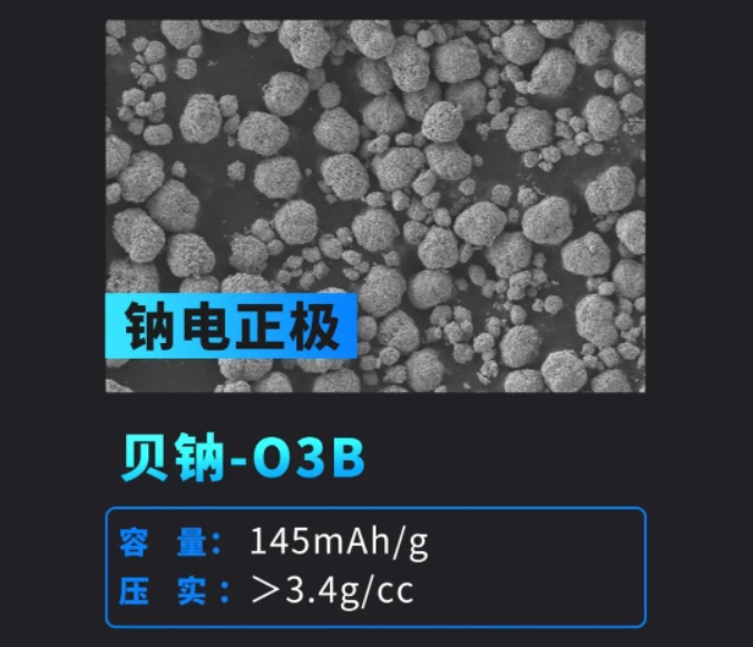 贝特瑞中央研究院院长李子坤介绍,“探钠350”的材料比容量可达350mAh/g,首次充放电效率可达90%;“贝钠-O3B”的材料比容量可达145 mAh/g,压实密度大于3.4g/cc。两项材料将大幅提高钠电池的容量及循环寿命,并显著提高充电效率以及极低温性能。