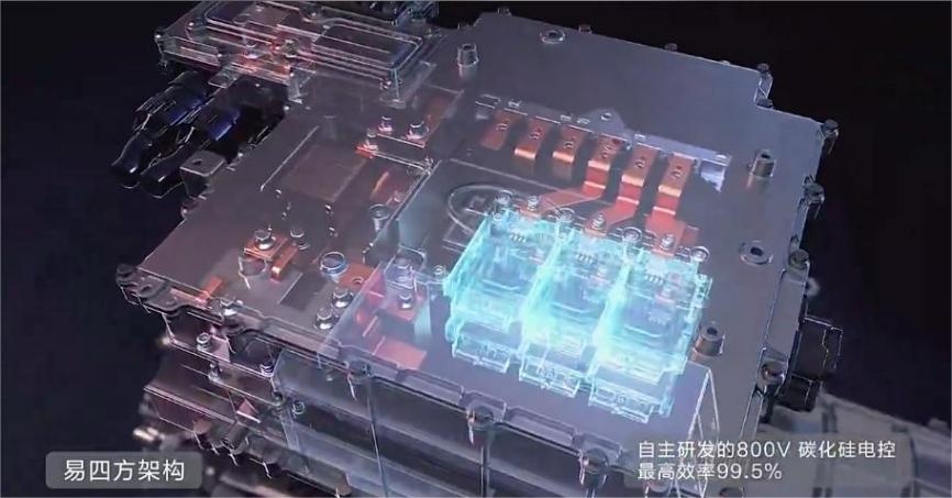 此外,今年年初,比亚迪推出全新一代SiC电控技术平台--“易四方”,易四方技术平台标配全新一代的800V SiC电控,最高效率99.5%,功率密度提升100%,整车工况效率提升3%以上。以高运算能力和控制速度,实现电流输出能力提升50%。