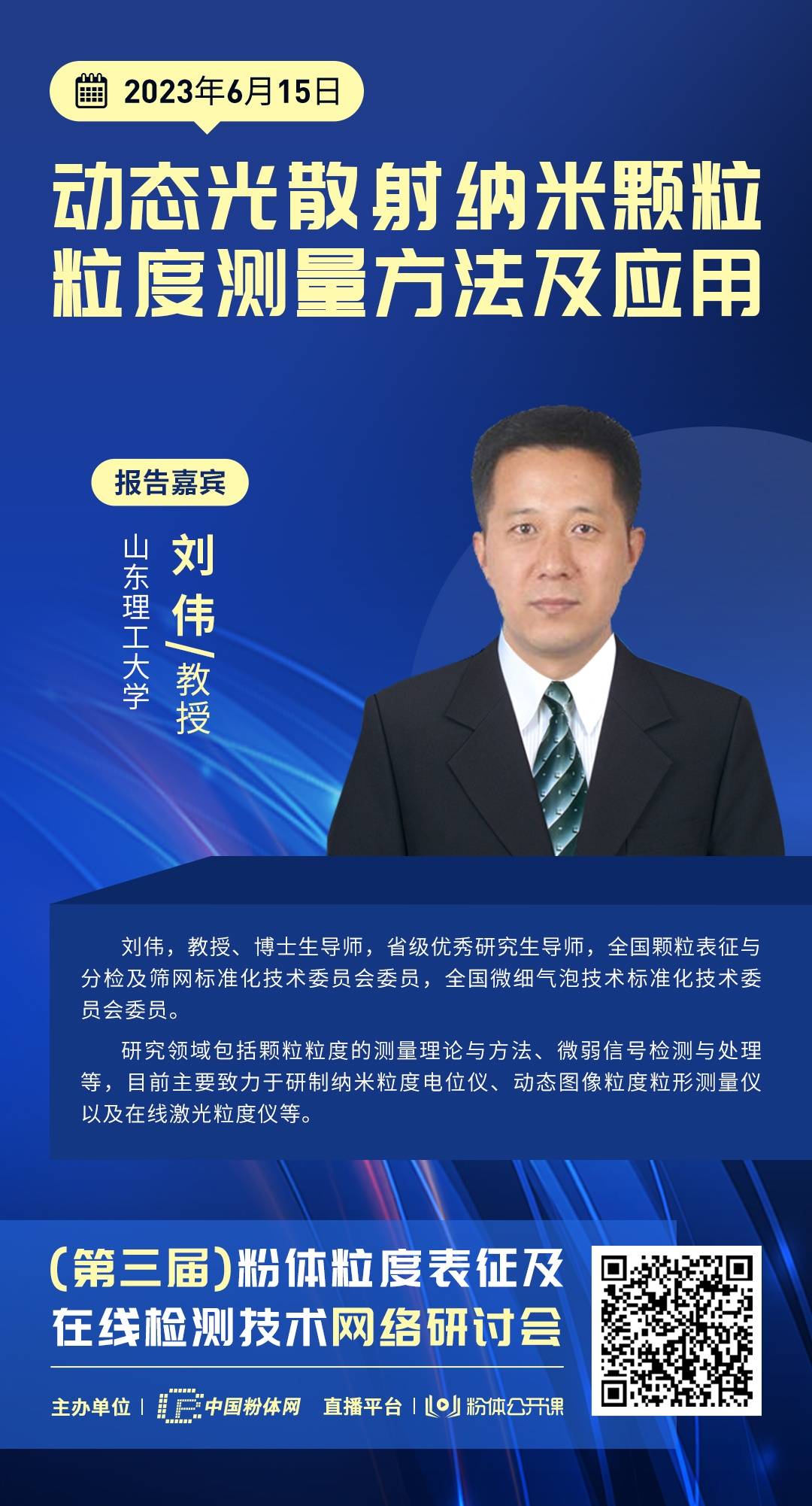 此次直播特邀山东理工大学刘伟教授做报告:动态光散射纳米颗粒粒度测量方法及应用