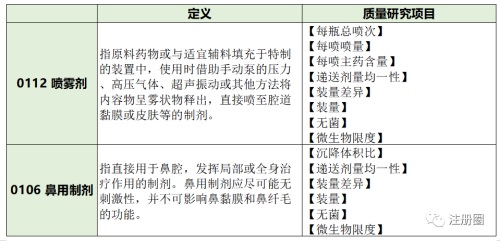 ▲ 表2-2020年版《中国药典》四部中0112 喷雾剂、0106 鼻用制剂