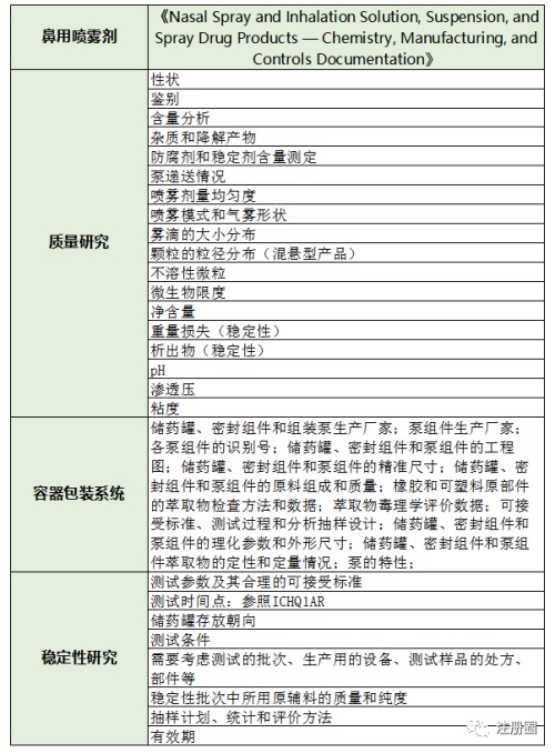 ▲ 表5-《Nasal Spray and Inhalation Solution, Suspension, and Spray Drug Products — Chemistry, Manufacturing, and Controls Documentation》