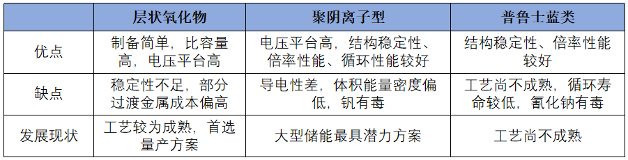 三种钠电池正极材料技术路线对比