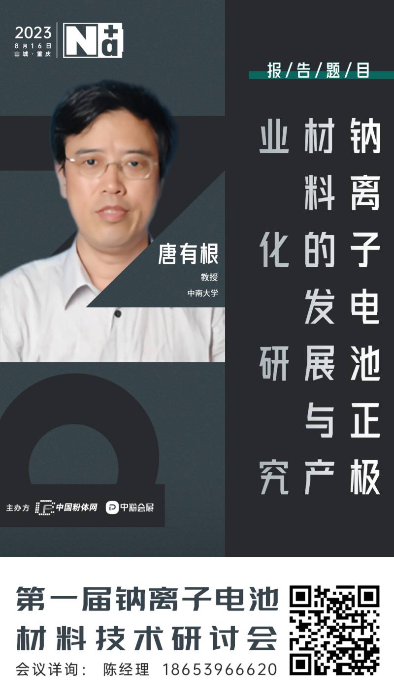 2023年8月,中国粉体网将在山城重庆举办“2023先进正极材料技术与产业高峰论坛暨第一届钠离子电池材料技术研讨会”。我们有幸邀请到中南大学的唐有根教授为我们带来题为《钠离子电池正极材料的发展与产业化研究》的报告。