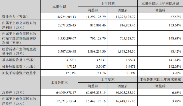 中国粉体网讯 7月25日晚,宁德时代发布2023年半年报,报告期内公司实现营业总收入1892.5亿元,同比增长67.5%;归母净利润207.17亿元,同比增长153.64%。