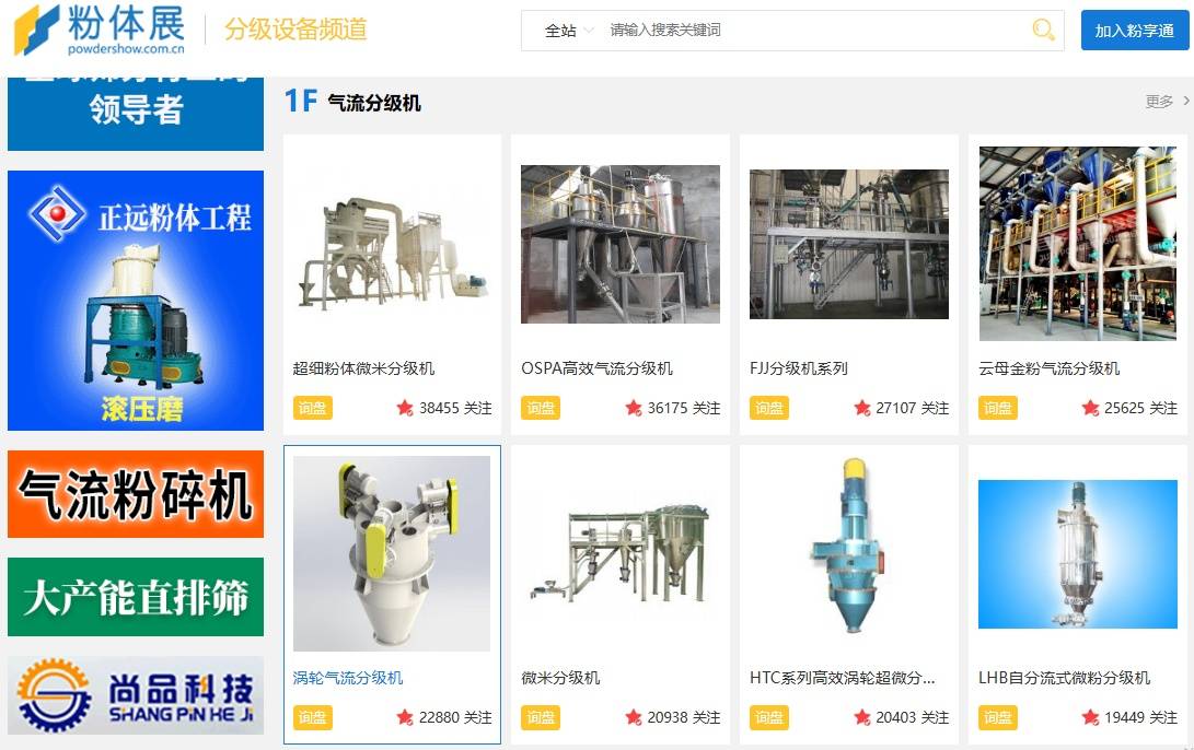 国内先进空气分级机 图源:粉体网-粉体展栏目