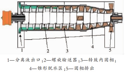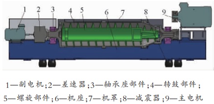 卧式螺旋卸料离心机:卧式螺旋卸料离心机主要由柱-锥形转鼓、螺旋推料器、行星差速器、挡料板、差速器、扭矩调节器、减振垫、布料器、外壳和机座等零件组成。转鼓通过主轴承水平安装在机座上,并通过连接盘与差速器外壳连接。螺旋推料器通过轴承同心安装在转鼓里,并通过外在键与差速器输出轴内在键相连。卧式螺旋卸料沉降离心机的主要技术参数为转鼓直径、长度、转速、分离因素、电机功率等。