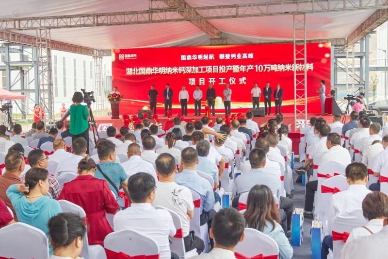 6月6日,湖北国鼎华明纳米钙深加工项目投产暨年产10万吨纳米新材料项目开工。湖北国鼎华明纳米新材料产业园位于刊江街道梅府社区,占地419亩,总投资超22亿元,将打造年产量百万吨规模省级最大纳米碳酸钙示范产业园区,力争五年之内形成产值规模100亿元以上的产业园区。