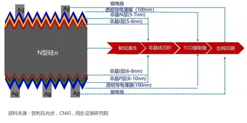 HJT电池结构及工艺流程