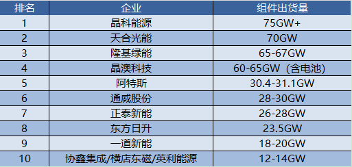 2023年光伏组件出货量TOP10