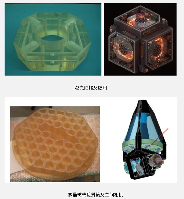 超低膨胀微晶玻璃是指以Li2O、Al2O3、SiO2为主要成分的玻璃经过严格的受控晶化处理后形成的以负膨胀β-石英固溶体纳米晶相和正膨胀玻璃相构成的一种复合材料,具有优异的光学、热学、力学等性能,是目前变温环境尺寸稳定性最好的材料。超低膨胀微晶玻璃具备结构与功能于一体的特点,主要用途为激光陀螺谐振腔体、空间相机反射镜镜坯和大型天文望远镜镜面。