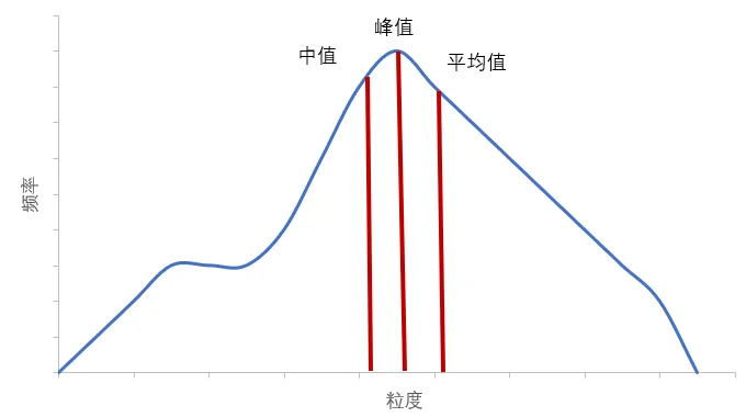 要特别说明的是,若粒度分布图不是完全对称的,则这三个参数不是完全相等的。