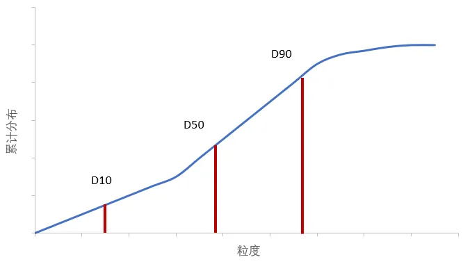 D90:体系中累积分布占比达到90%时的对应的粒度