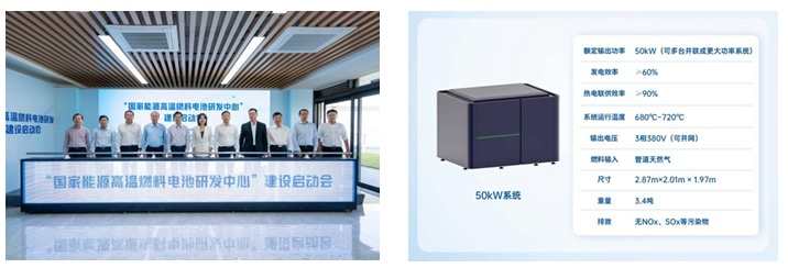 三环集团不断攻关SOFC领域核心技术,提升产品可靠性,成功开发了50kW SOFC热电联供系统,为能源转型提供解决方案。