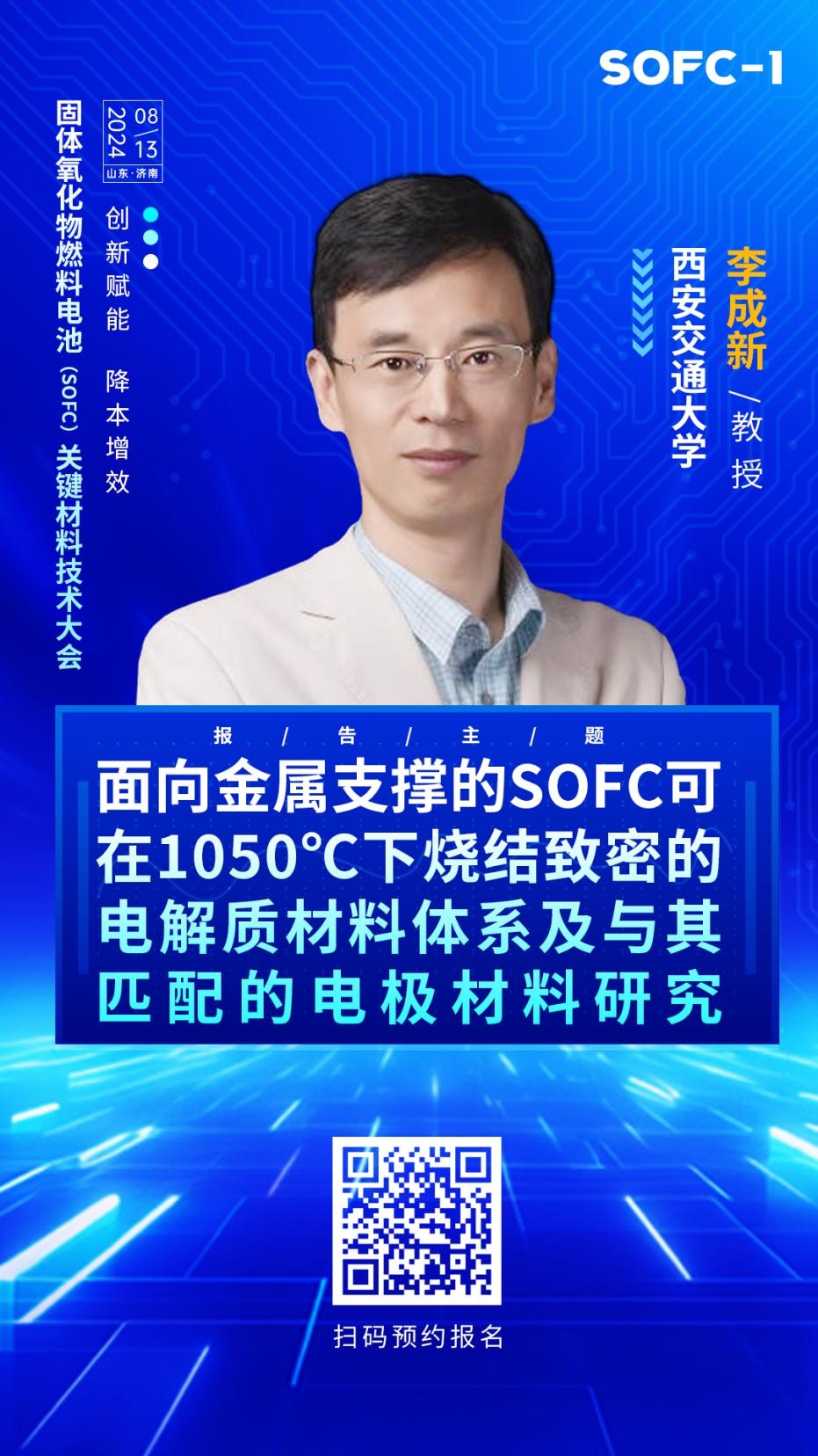 如何在多孔金属支撑体上制备出致密的电解质层是限制MS-SOFC技术发展的挑战。2024年8月13日,中国粉体网将在济南举办“2024固体氧化物燃料电池(SOFC)关键材料技术大会”,届时,来自西安交通大学材料科学与工程学院的李成新教授将带来《面向金属支撑的SOFC可在1050℃下烧结致密的电解质材料体系及与其匹配的电极材料研究》的报告,报告综述了多孔金属支撑体的材料设计及表面抗氧化涂层的防护策略、可在小于1050℃烧结致密的陶瓷电解质材料体系以及与金属支撑SOFC/SOEC相匹配的电极材料研发进展,并报告了金属支撑SOFC的电池性能。