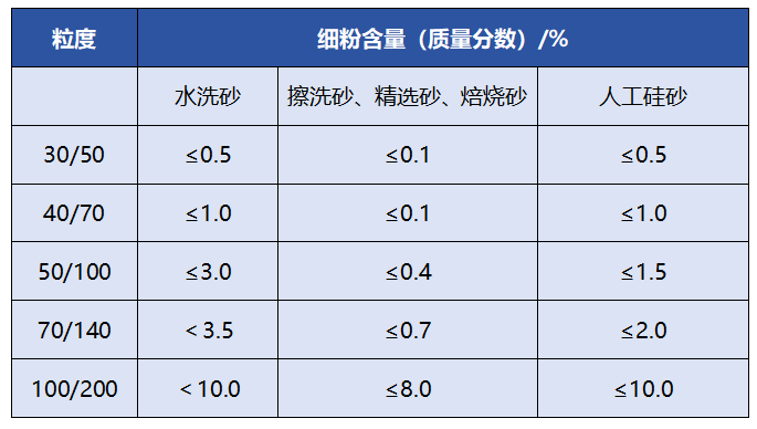 铸造用硅砂各粒度组成的细粉含量