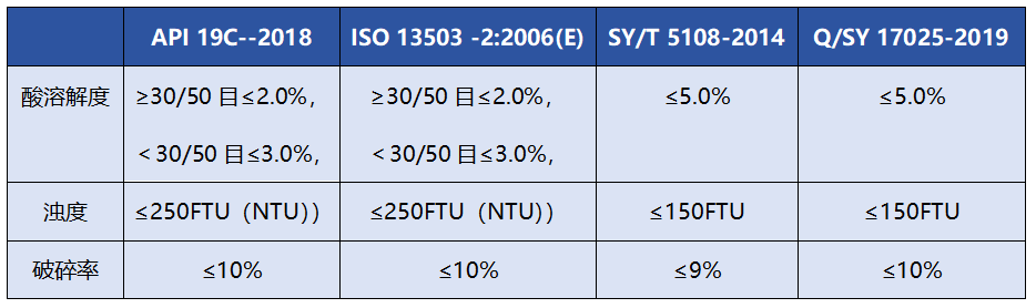 石英砂支撑剂各指标不同标准结果评定对比
