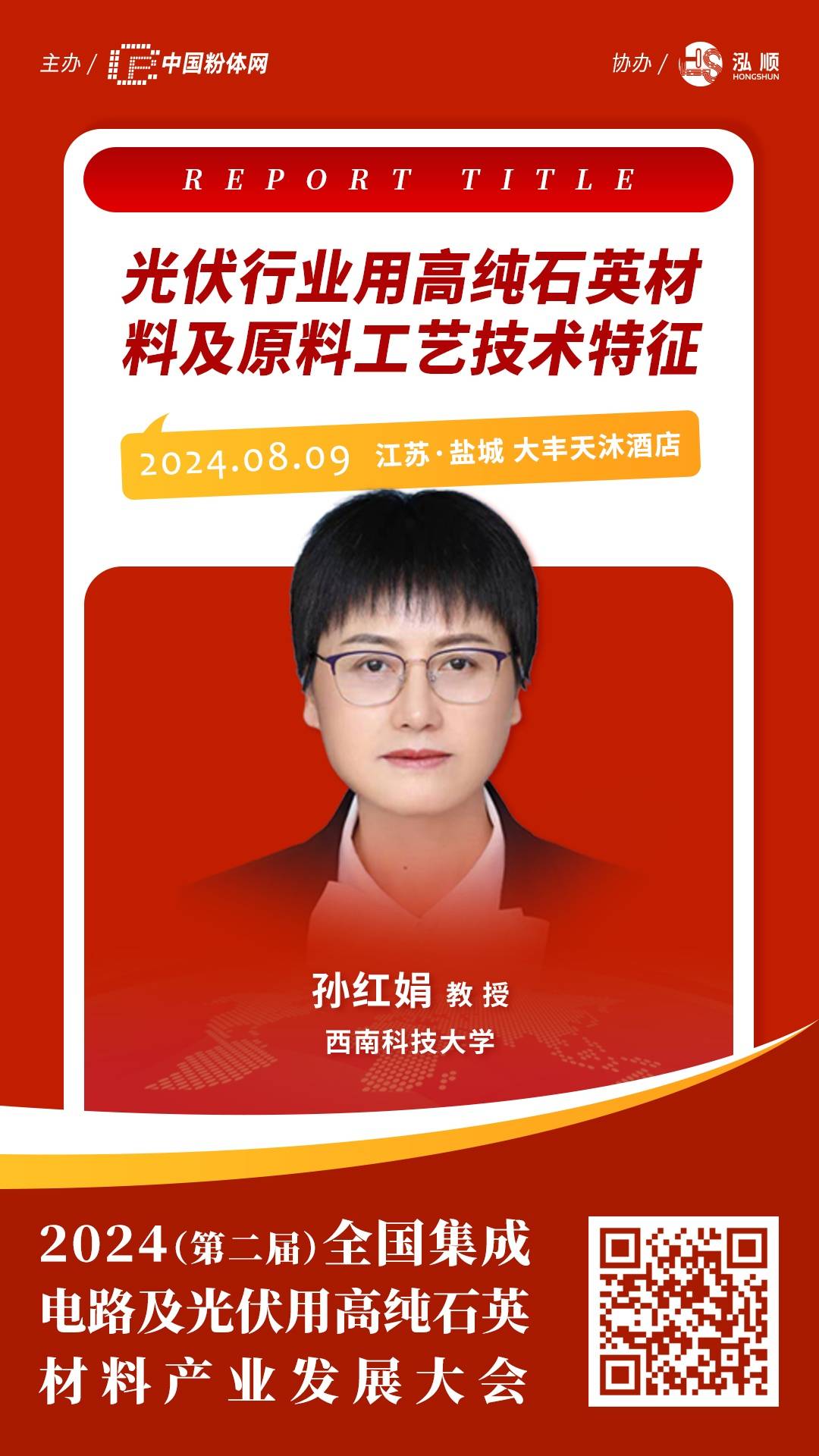 2024年8月9日,由中国粉体网主办的“2024(第二届)全国集成电路及光伏用高纯石英材料产业发展大会”将在江苏盐城召开,西南科技大学的孙红娟教授将做《光伏行业用高纯石英材料及原料工艺技术特征》的报告,届时,她将详细解读光伏行业用高纯石英原料特点、高纯石英砂工艺特征以及杂质去除技术。