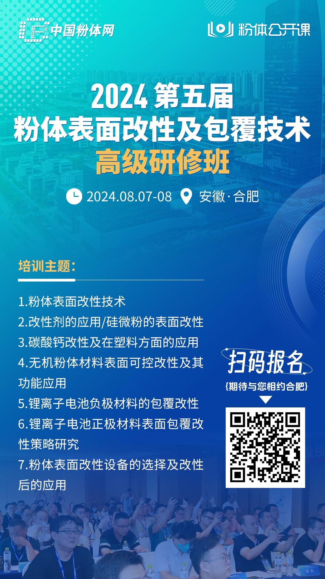 中国粉体网讯 中国粉体网粉体公开课将于2024年8月7-8号,在安徽省合肥市举办“2024第五届粉体表面改性及包覆技术高级研修班”,衢州卫凯化工有限公司邀您一同参加!