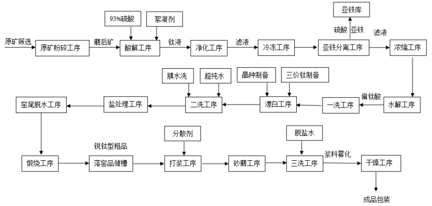 食品级钛白粉制备工艺流程图